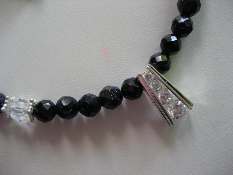 Navy Goldstone faceted beads join crystals, Sterling silver stars, and a CZ pendant on this necklace.